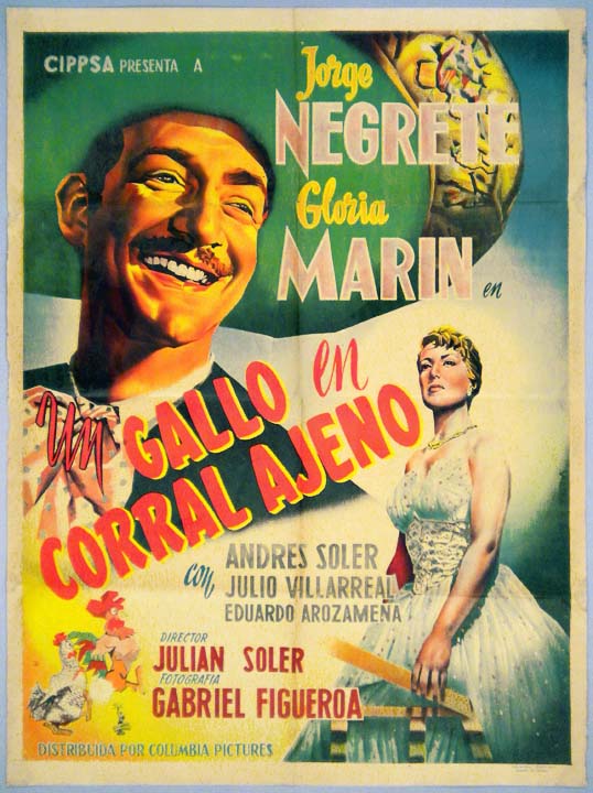 Magnificent Mexican musical movie poster has a wonderful image of one of the superstars of Mexican cinema, Jorge Negrete... The film starred Gloria Marin, Andres Soler, Julio Villarreal and Maruja Grifell. Sold |