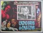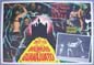 Eye-catching horror film lobby card with psychedelic artwork showing Zovek zooming through time and space. The film features bizarre monsters including: cannibal midgets, zombies and vampire like beasts. This was Zovek's first film outing, where he plays himself -- a Houdini-like magician. One card pictures Zovek performing one of his death-defying escapes -- surrounded by leather hooded assistants... This movie starred Zovek, Tere Velazquez, German 'Tin Tan' Valdes, Jose Galvez, Nubia Marti and Yerye Beirute. Zovek escape scene - $35 ... Other cards - $15 each |