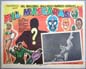 Colorful super hero / horror film lobby card features great graphics of a masked do-gooder, plus a colorful magician. First film of the Rocambole series pits the hero against some deformed, female monsters. The card has average signs of handling -- pinholes, edge wear on right border, mild soiling -- but the colors are bright and there are no major flaws... This movie starred Rocambole, Julio Aleman, Maria Duval, Regina Torne and Chucho Salinas. $15 |