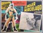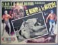 Beautiful horror / sci-fi film lobby card (10.5x14") pictures the deformed monster who is dragging a sexy female captive along side of him. Lurid color and great monster graphics. The card has a few pinholes -- mainly at the corners -- but otherwise, it is clean and bright... This movie starred Joaquin Cordero, Armando Calvo, Andres Solar and Rosa De Castilla. $20 each |