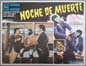 Colorful horror film lobby card with attractive border art, featuring lots of macabre symbols. There are also atmospheric B&W inset-scenes. Light wear -- no major flaws... This movie starred Gaston Santos, Rafael Bertrand, Mapita Cortes, Carlos Ancira and Luis Aragon. $25 |