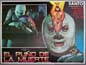 Striking horror / lucha libre film halfsheet features great graphics including, marching monsters and numerous Salvadore Dali-like floating eyeballs. The plot concerns mucho mummies battling a group of masked wrestlers, led by Mil Mascaras. Giant lobby cards (or Half-sheets) are horizontal format posters that measure approximately 16.5"x 24" and they usually have a single vertical fold. These posters (printed on heavy stock paper) were produced in place of standard Mexican lobby cards for some films in the early 1970s (particularly for the films produced by Rogelio Agrasanchez). GLCs feature full-color artwork covering most of the poster, with a small B&W inset image picturing a scene from the film. The poster has some light wear on the borders and along the fold, but this minor flaw doesn't greatly affect the colorful image area... This movie starred Mil Mascaras, Blue Angel, Rayo de Jalisco, Julio Cesar Agrasanchez and Mabel Luna. $45 each |