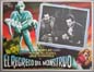 Fantastic western / horror film lobby card features a great image of a Frankenstein like monster. The card is vibrantly colored, with stunning artwork. This film was part of the 'Zorro Escarlata' western film series. Light wear -- no major flaws... This movie starred Luis Aguilar, Teresa Velazquez, Jaime Fernandez and Yolanda del Valle. $25 |