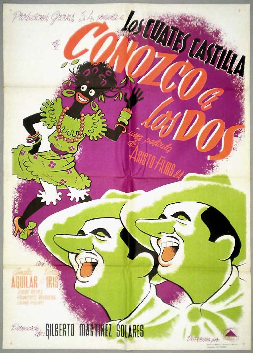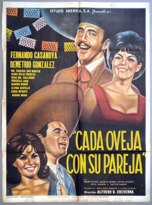 Attractive Mexican comedy movie poster has great caricatures of the two main stars, who are surrounded by musical imagery. Nice color too!... The film starred Demetrio Gonzalez, Rosa de Castilla, Roberto Canedo and Celia Manzano. $45 |