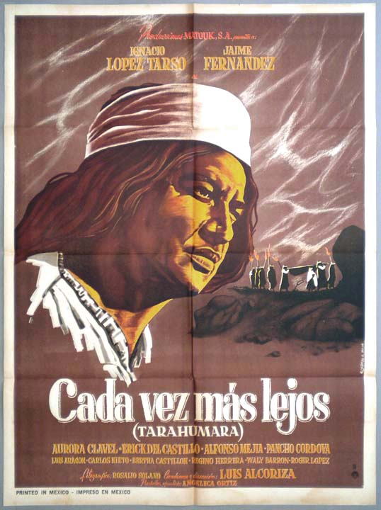 Striking Mexican movie poster from an award-winning film concerning the exploits of the Tarahumara Indians. It features an attractive image of Jaime Fernandez... The film starred Ignacio Lopez Tarso, Aurora Clavel, Eric del Castillo and Berta Castillon. $65 |