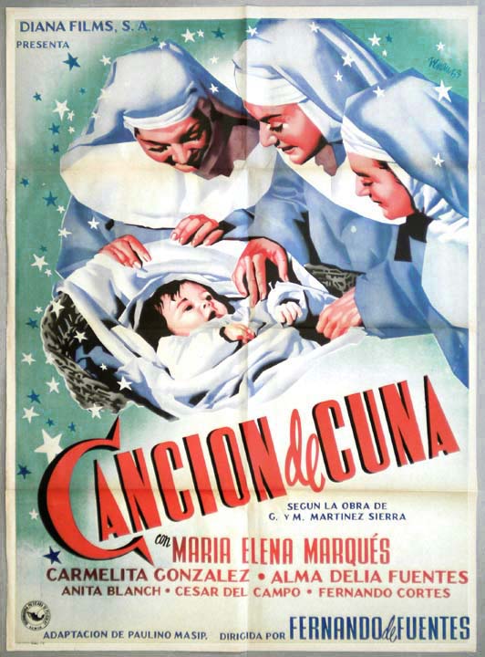 Pretty and stylish Mexican movie poster pictures three nun's taking care of a baby... The film starred Maria Elena Marques, Alma Delia Fuentes, Carmelita Gonzalez and Anita Blanch. $75 |