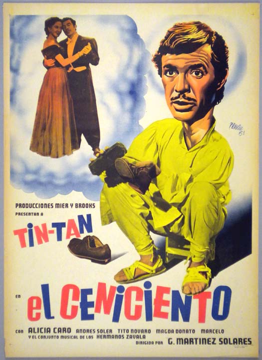 Unusual Mexican comedy movie poster, features a nice caricature of comedy star TinTan. The comedian is looking a little more serious than usual. Great design!... The film starred German 'Tin Tan' Valdes, Alicia Caro, Andres Soler and Tito Novaro. (Rolled) $165 |