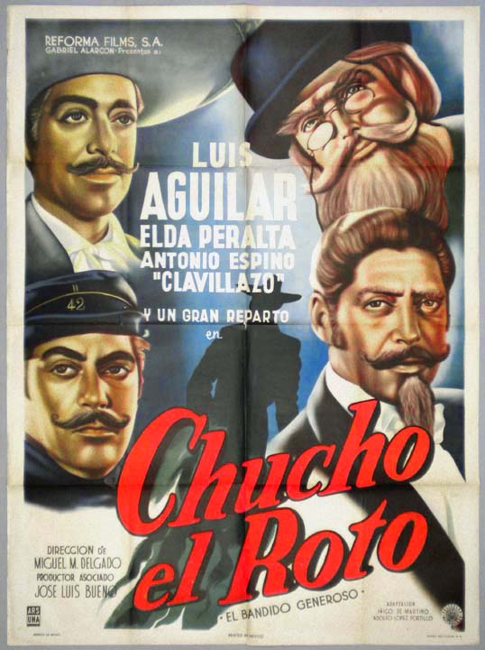 Atmospheric Mexican crime movie poster with good color and several fine images of Aguilar -- in various disguises... The film starred Luis Aguilar, Elda Peralta, Jose Baviera, Miguel Manzano and Antonio 'Clavillazo' Espino. $55 |