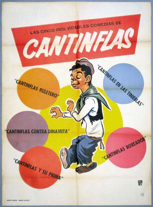 Colorful Mexican comedy movie poster, which was used to promote a festival of five different Cantinflas movies. The film features a great comic image of Mario "Cantinflas" Moreno -- shown as a typically carefree hobo. $55 |