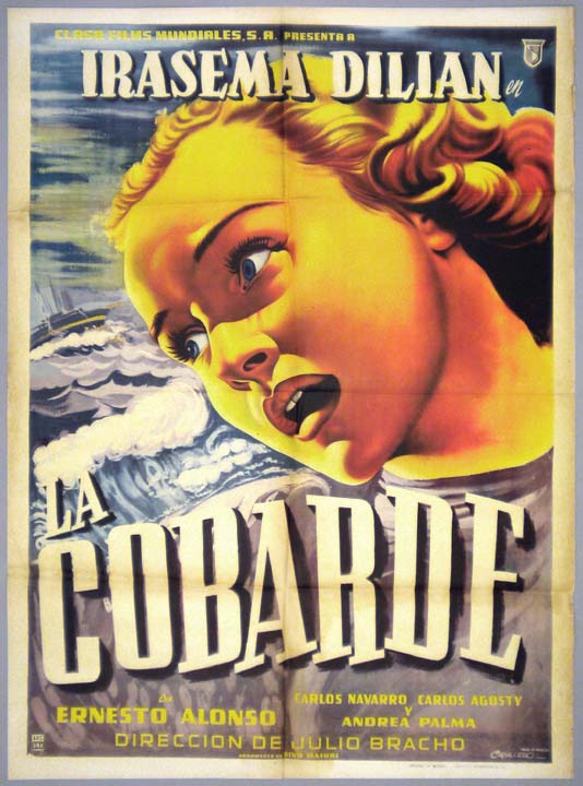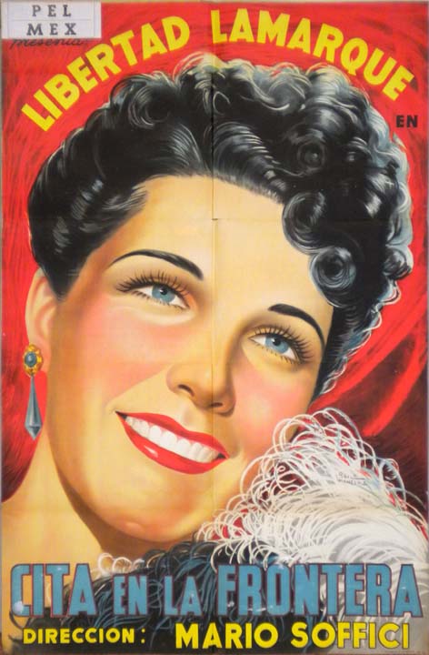 Colorful Argentine onesheet poster (29x43") from a Spanish-language musical film. The onesheet pictures a stunning close-up image of Ms. Lamarque. The borderless poster has a few extra horizontal fold lines, but this minor flaw is not very noticeable. Otherwise, the colors are bright, and the poster looks great... The film starred Libertad Lamarque, Floren Delbene, Elisa Christian Galve and Orestes Caviglia. $95 |