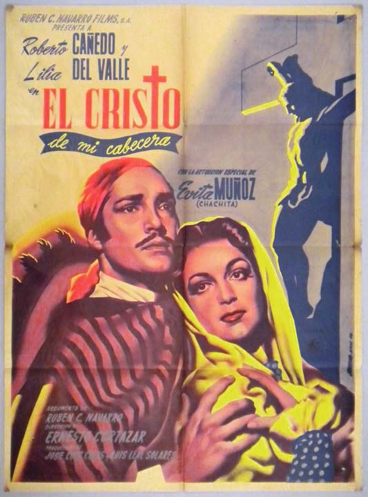 Striking Mexican movie poster with a religious slant. It has nice coloring, plus a great close-up of Luis Aguilar... The film starred Rosita Quintana, Alicia Caro, Armando Soto La Marina and Carlos Martinez Baena. $125 |