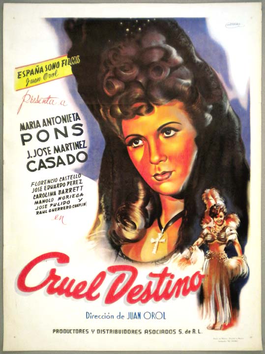 Beautiful Mexican movie poster features a superb central image of the lovely Ms. Pons. This rare, early onesheet is a prime example of 1940s Mexican poster art. There's a light crease near the upper left corner, otherwise, it's in great shape... The film starred Maria Antonieta Pons, Juan Jose Martinez Casado, Florencio Castello and Jose Eduardo Perez. (Rolled) $350 |