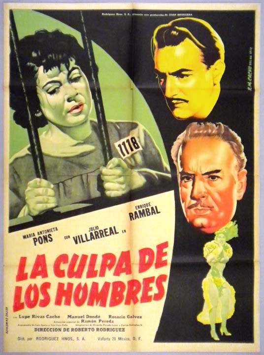 Striking Mexican crime movie poster shows the usually glamourous Maria Antonieta Pons in a women's prison. The film starred Enrique Rambal, Julio Villarreal, Lupe Rivas Cacho and Manuel Donde. $75 |