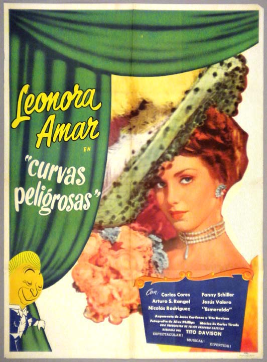 Elegant Mexican musical movie poster with a style far different than a typical Mexican onesheet. The poster features a gorgeous close-up portrait of the lovely Leonora Amar. Impressive! There is one repaired tear on the left side border, but otherwise, it is in beautiful shape... The film starred Carlos Cores, Fanny Schiller, Arturo Soto Rangel, Esmeralda and Elodia Hernandez. $135 |