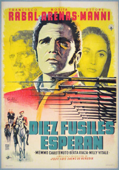Attractive Mexican movie poster (from a Spanish film) features an unusual design -- with great coloring and a fine close-up image of Francisco Rabal... The film starred Ettore Manni, Rosita Arenas and Berta Riaza. $55 |
