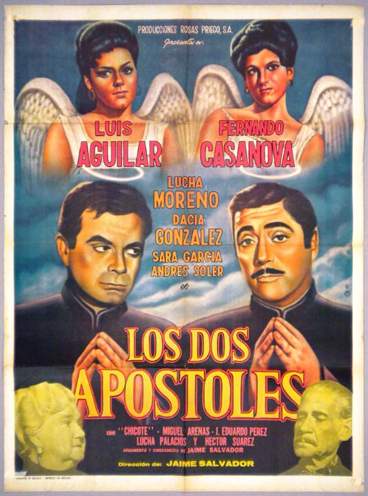Cute Mexican comedy movie poster features great images of the main 4 stars -- with Moreno and Gonzalez appearing as innocent angels. Some mild tape marks / light wear on the borders, but no major flaws -- the colors are bright... The film starred Luis Aguilar, Fernando Casanova, Lucha Moreno, Dacia Gonzalez, Sara Garcia and Andres Soler. $45 |