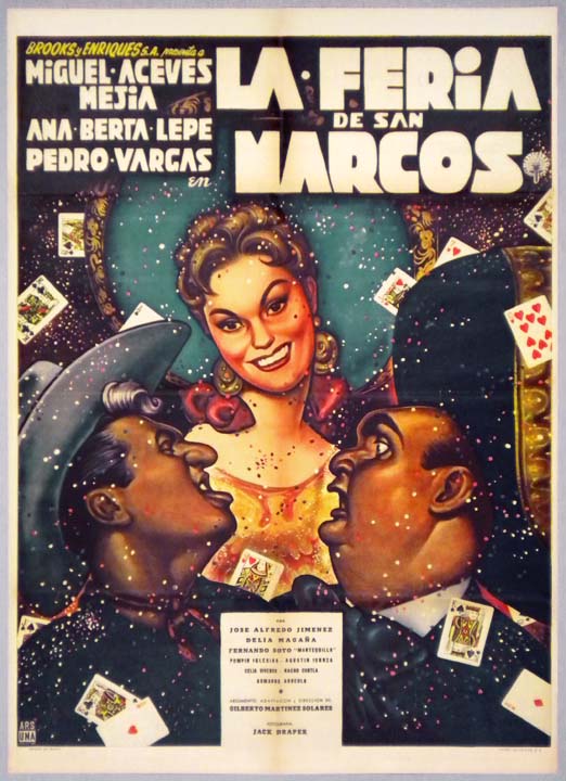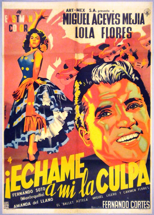 Striking Mexican musical movie poster features a lovely dancing senorita and a nice close-up of Miguel Aceves Mejia... The film starred Lola Flores, Fernando Soto, Amanda del Llano and Miguel Ligero. $95 |
