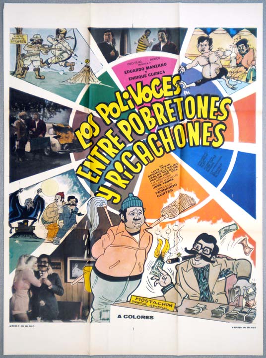 Colorful Mexican comedy movie poster with a nice montage of images picturing the madcap comedians, Los Polivoces... The film starred Eduardo Manzano, Enrique Cuenca, Lucy Tovar and Carlos Riquelme. $45 |