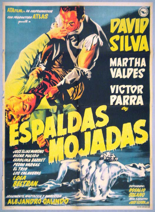 Gorgeous Mexican adventure movie poster with some film noirish tendencies. Great color and design!... The film starred David Silva, Victor Parra, Martha Valdes, Oscar Pulido and Pedro Vargas. $125 |
