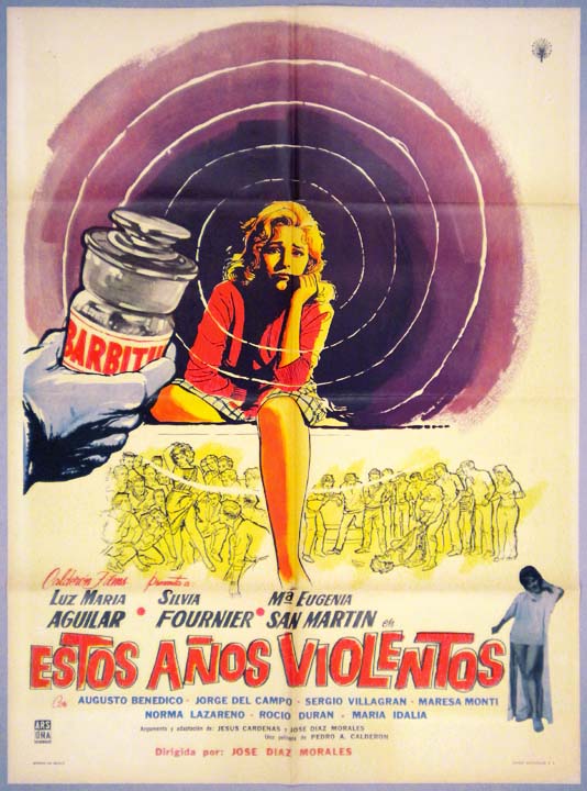 Great youth-oriented / JD Mexican movie poster shows drug-related turmoil and imagery. Nice design... The film starred Luz Maria Aguilar, Silvia Fournier, Maria Eugenia San Martin and Augusto Benedico. $65 |