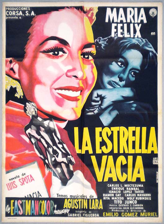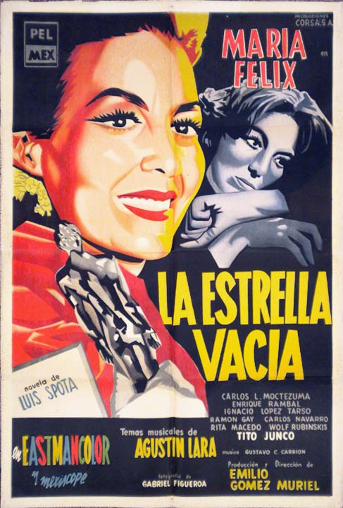 Colorful Argentine onesheet poster (29x43") from a classic Mexican movie, features two stunning images of the attractive Maria Felix. Beautiful large-scale poster, with Renau style art... The film starred Maria Felix, Tito Junco, Carlos Lopez Moctezuma and Enrique Rambal. $150 |