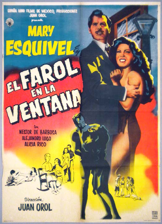 Great Mexican film noir movie poster combines images of a gunman and a nude woman in a window -- resulting in some serious voyeurism. Attractive design... The film starred Arturo de Cordova, Silvia Pinal, Jose Maria Linares Rivas, Andres Soler and Bertica Serrano. $65 |