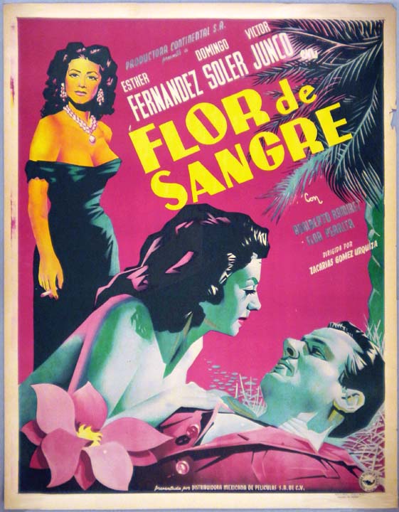 Beautiful Mexican movie poster features lovely images of the main stars. Great color!... The film starred Marga Lopez, Julio Villarreal, Andrea Palma, Ramon Gay and Hortensia Santovena. $55 |