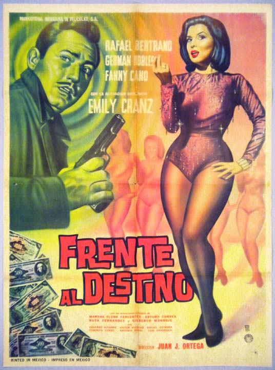 Lurid and colorful Mexican crime movie poster with a great image of the very sexy Ms. Cranz... The film starred Rafael Bertrand, German Robles, Emily Cranz and Marta Elena Cervantes. $75 |