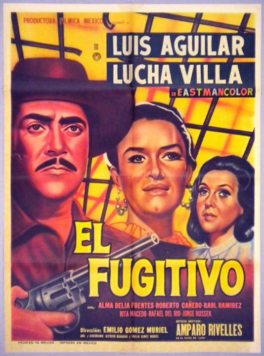 Very beautiful Mexican western movie poster has a superb depiction of singing cowboy Aguilar, and his two female co-stars... The film starred Luis Aguilar, Lucha Villa, Amparo Rivelles and Alma Delia Fuentes. $75 |