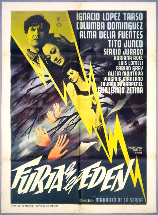 Unusual youth oriented Mexican movie poster with an Avant Garde style and atmospheric background... The film starred Ignacio Lopez Tarso, Columba Dominguez, Alma Delia Fuentes and Tito Junco. $65 |