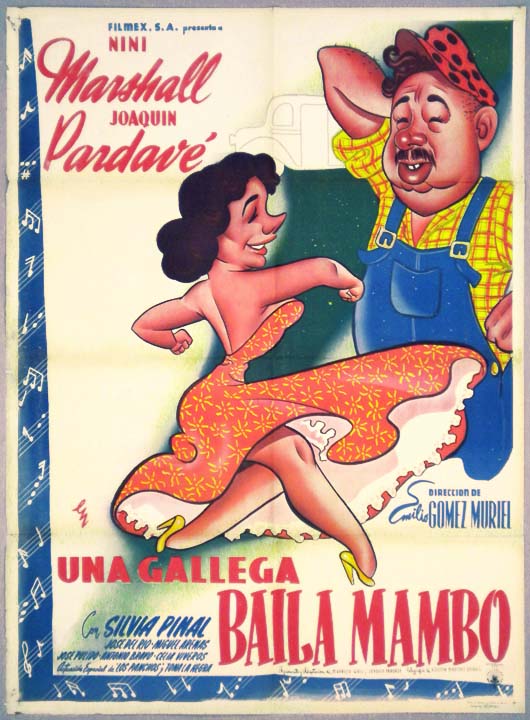 Colorful Mexican comedy movie poster with a whimsical caricatures of the two main stars -- Marshall and Pardave... The film starred Joaquin Pardave, Nini Marshall, Silvia Pinal and Pepe del Rio. $75 |