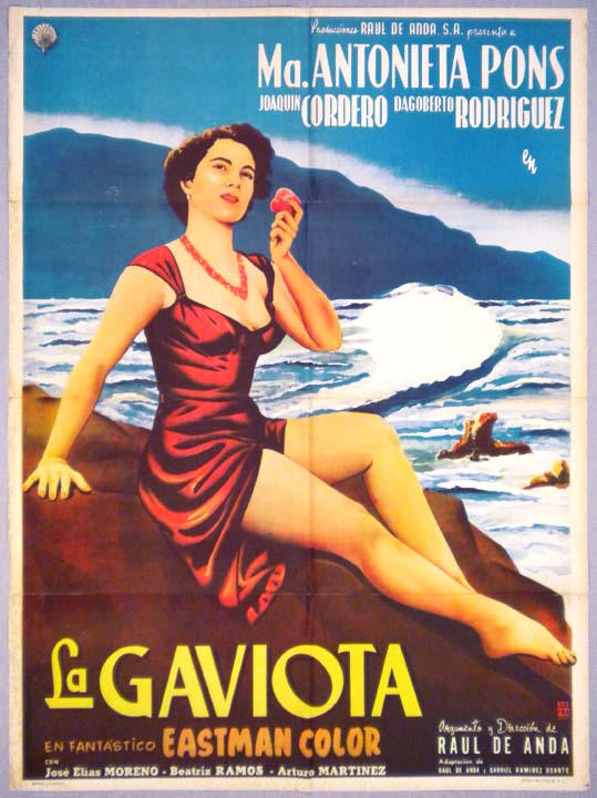 Beautiful Mexican romance film poster depicts a gorgeous image of a very sexy Ms. Pons, with a pretty seaside background... The film starred Maria Antonieta Pons, Jose Elias Moreno, Beatriz Ramos and Arturo Martinez. $125 |