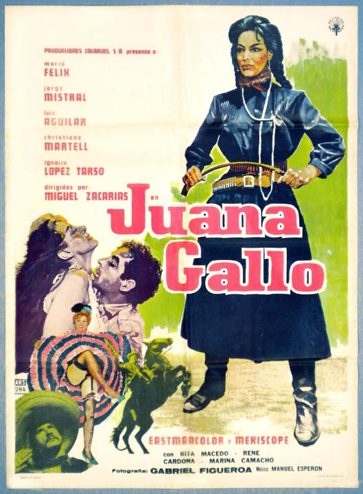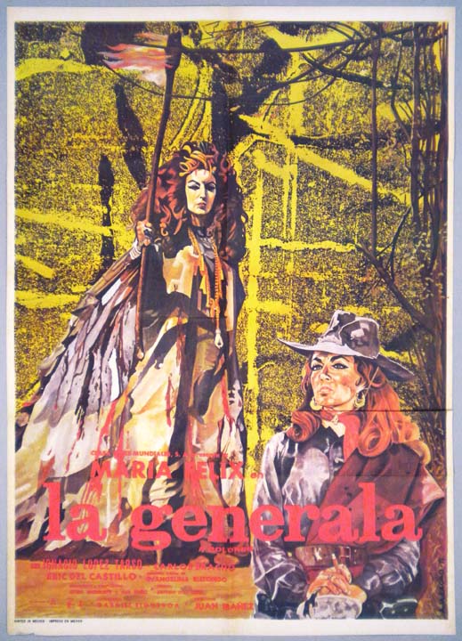 Stylish and colorful Mexican movie poster has two nice images of the popular actress, Maria Felix -- who plays a key figure in the Mexican revolution... The film starred Ignacio Lopez Tarso, Carlos Bracho, Eric del Castillo and Evangelina Elizondo. $75 |