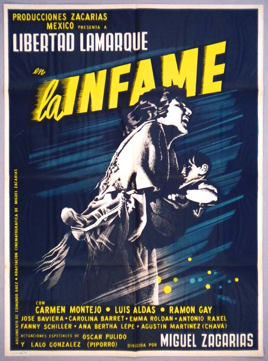 Striking and stylish Mexican film noir movie poster features stark black and white graphics picturing a woman holding a child. Startling Renau poster... The film starred Libertad Lamarque, Carmen Montejo, Luis Aldas, Ramon Gay, Ana Bertha Lepe and Lalo 'Piporro' Gonzalez. $65 |