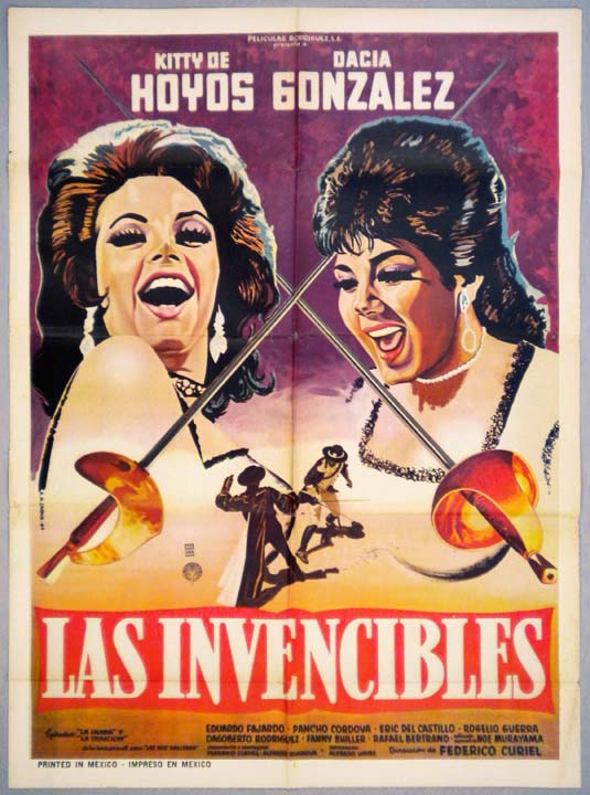 Inspired by the legend of Zorro, this striking Mexican adventure movie poster features images of two female swordspeople, and shows a close-up of one of their victims... The film starred Kitty de Hoyos, Dacia Gonzalez, Eduardo Fajardo and Eric del Castillo. $65 |