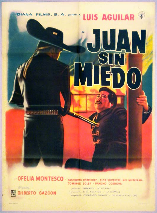 Appealing Mexican western movie poster with a fine mix of color and B&W graphics... The film starred Antonio Aguilar, Jaime Fernandez, Martha Dual and Eleazar Garcia. $65 |