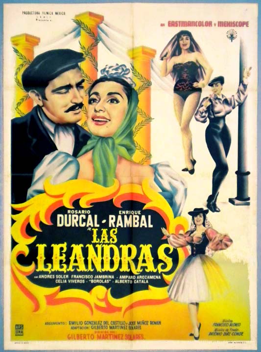 Colorful Mexican movie poster features great close-ups of the main star, plus several caricatures of sexy women... The film starred Rosario Durcal, Enrique Rambal, Andres Soler and Francisco Jambrina. $45 |