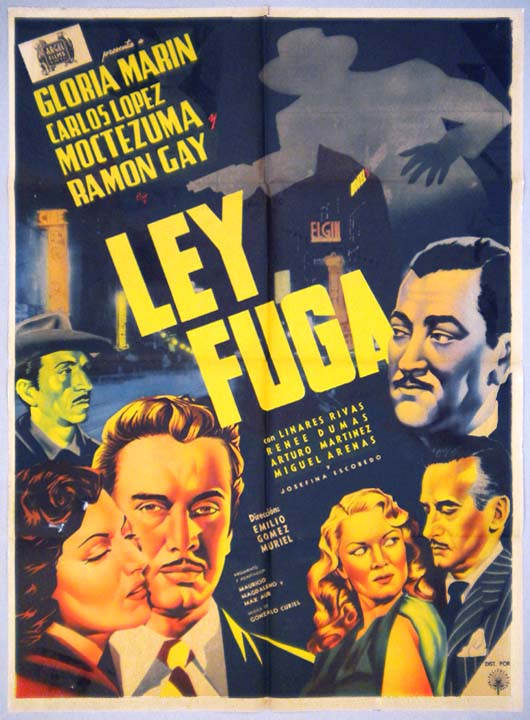 Striking Mexican film noir movie poster with many classic elements of the genre, including: shadowy figures, dark city streets and sexy femme fatales. The poster has darkened a bit with age, but this does not detract from its appeal. It will display beautifully... The film starred Gloria Marin, Carlos Lopez Moctezuma, Ramon Gay and Renee Dumas. $135 |