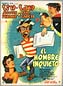 Great Mexican comedy movie poster shows comedian 'Tin Tan' on an island, surrounded by scantily-clad women. Superb graphics! It appears that this poster got damp / wet at some point and some light water damage has resulted. However, these water marks are not very noticeable or distracting -- and otherwise -- the colors are clean and bright... The film starred German 'Tin Tan' Valdes, Lilia del Valle, Marcelo Chavez, Mantequilla, Carlota Solares and Aurora Segura. $185 |