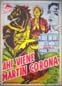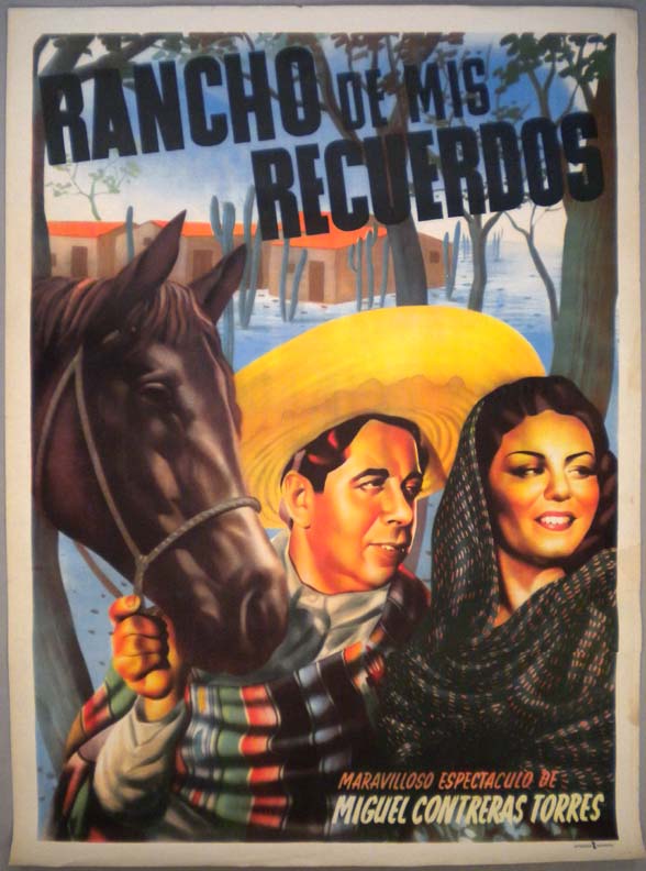 Very attractive film poster from a very early western / revolutionary drama. The onesheet features vivid coloring and a classic image of Medel -- with his horse and his girl on either side. Beautiful! There is a few repaired border chip, plus some edge wear and small tears along the borders -- but these minor flaws do not affect the image area. The poster also appears to have gotten wet at some point, and this has left some discoloration -- which is visible on the front on the underside of Medel 's sombrero -- but this looks like it is just a shadow on the hat brim, so it is not very noticeable. The poster will display great!... This movie starred Manuel Medel, Miguel Contreras Torres, Nelly Montiel, Eugenia Galindo and Meche Barba. (This poster has only limited, very mild fold lines -- so it will be sent rolled.) $150 |