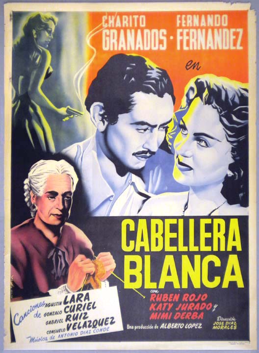 Stylish Mexican movie poster has great color, nice close-ups of the main stars, plus a film-noir image of a woman holding a smoking gun. Wow!!! There is some edge wear -- chips and small tears -- but these flaws do not detract from the striking image area, which is clean and bright. It will display beautifully... The film starred Rosario Granados, Fernando Fernandez, Ruben Rojo and Katy Jurado. (Rolled) $135 |