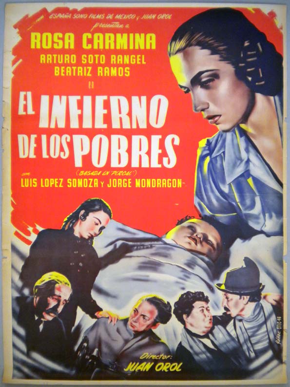 Beautiful Mexican movie poster has striking images of several of the stars -- including the lovely Ms. Carmina. There are some tears, chips, repairs and wear along the borders, but this wear does not detract from the beautiful main image area. The colors are bright and the poster will display beautifully... The film starred Rosa Carmina, Arturo Soto Rangel, Beatriz Ramos, Luis Lopez Somoza and Jorge Mondragon. (Rolled) $150 |
