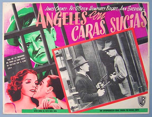 Beautiful Mexican jumbo lobby card (12.5x16.5") from the 1938 Warner Brothers crime / JD film, ANGELS WITH DIRTY FACES, which starred James Cagney, Pat O'Brien, Humphrey Bogart, Ann Sheridan, George Bancroft, Billy Halop, Bobby Jordan, Leo Gorcey, Gabriel Dell and Huntz Hall. $35 each |