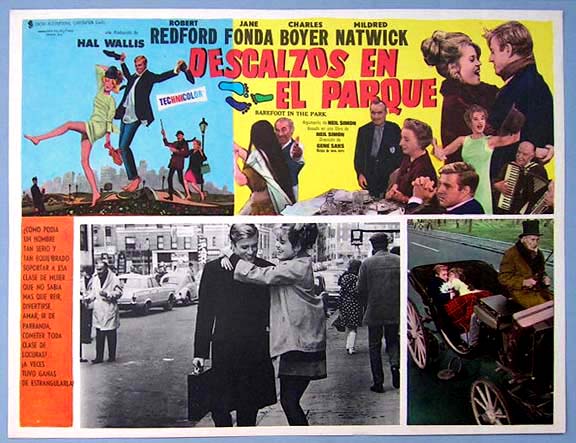 Beautiful Mexican jumbo lobby card (12.5x16.5") from the 1967 Paramount romance film, BAREFOOT IN THE PARK, which starred Robert Redford, Jane Fonda, Charles Boyer and Mildred Natwick. $15 each |