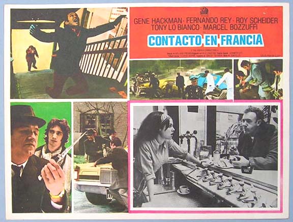 Beautiful Mexican jumbo lobby card (12.5x16.5") from the 1971 20th Century Fox action / thriller / crime film, THE FRENCH CONNECTION, which starred Gene Hackman, Fernando Rey, Roy Scheider and Tony Lo Bianco. $15 each |