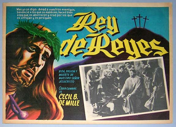 Beautiful Mexican jumbo lobby card (12.5x16.5") from the 1927 Pathe Biblical film, THE KING OF KINGS, which starred H.B. Warner, Dorothy Cumming, Ernest Torrence and Joseph Schildkraut. The film was directed by Cecil B. DeMille. $20 each |