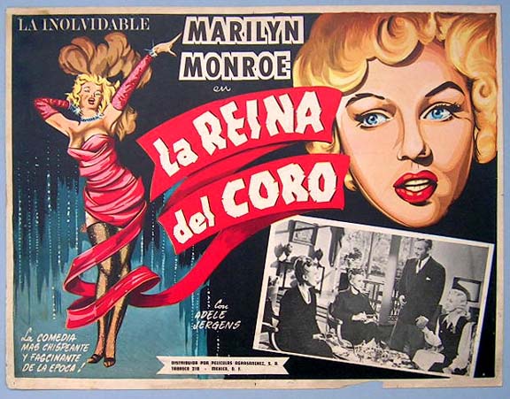 Beautiful Mexican jumbo lobby card (12.5x16.5") from the 1949 Columbia musical film, LADIES OF THE CHORUS, which starred Adele Jergens, Marilyn Monroe, Rand Brooks, Nana Bryant, Eddie Garr and Steven Geray. $65 |