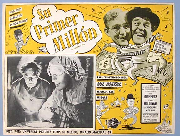 Beautiful Mexican jumbo lobby card (12.5x16.5") from the 1951 British comedy film, THE LAVENDER HILL MOB, which starred Alec Guinness, Stanley Holloway, Sid James, Alfie Bass and Marjorie Fielding. $25 each |