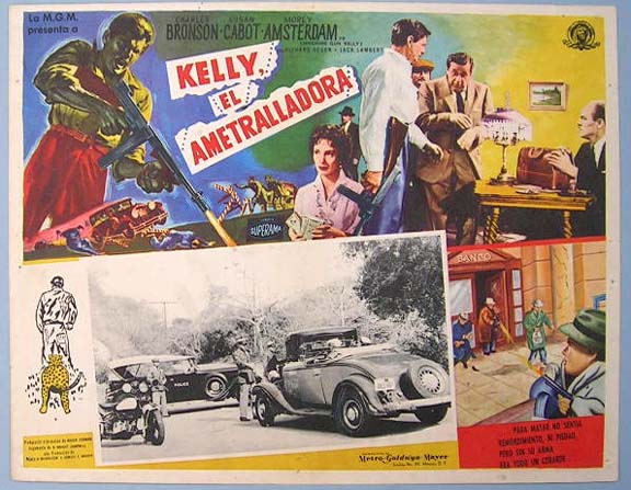 Beautiful Mexican jumbo lobby card (12.5x16.5") from the 1958 AIP crime / gangster film, MACHINE GUN KELLY, which starred Charles Bronson, Susan Cabot, Morey Amsterdam, Richard Devon and Jack Lambert. $20 each |