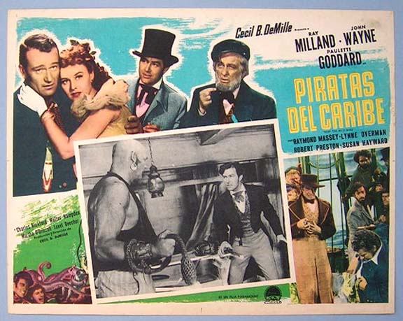 Beautiful Mexican lobby card (11x14") from the 1942 Paramount high seas / adventure film, REAP THE WILD WIND, which starred Ray Milland, John Wayne, Paulette Goddard, Raymond Massey, Robert Preston, Lynne Overman and Susan Hayward. $15 each |